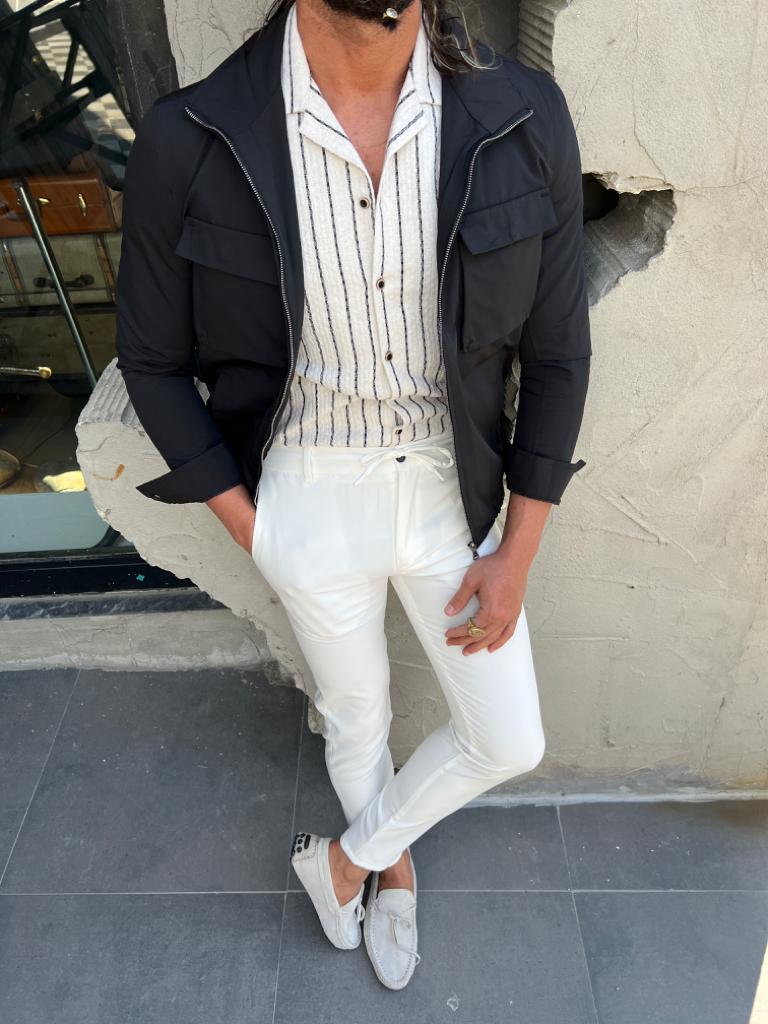 Front Pocket Detailed Waist Elastic Bomber Coat - Black