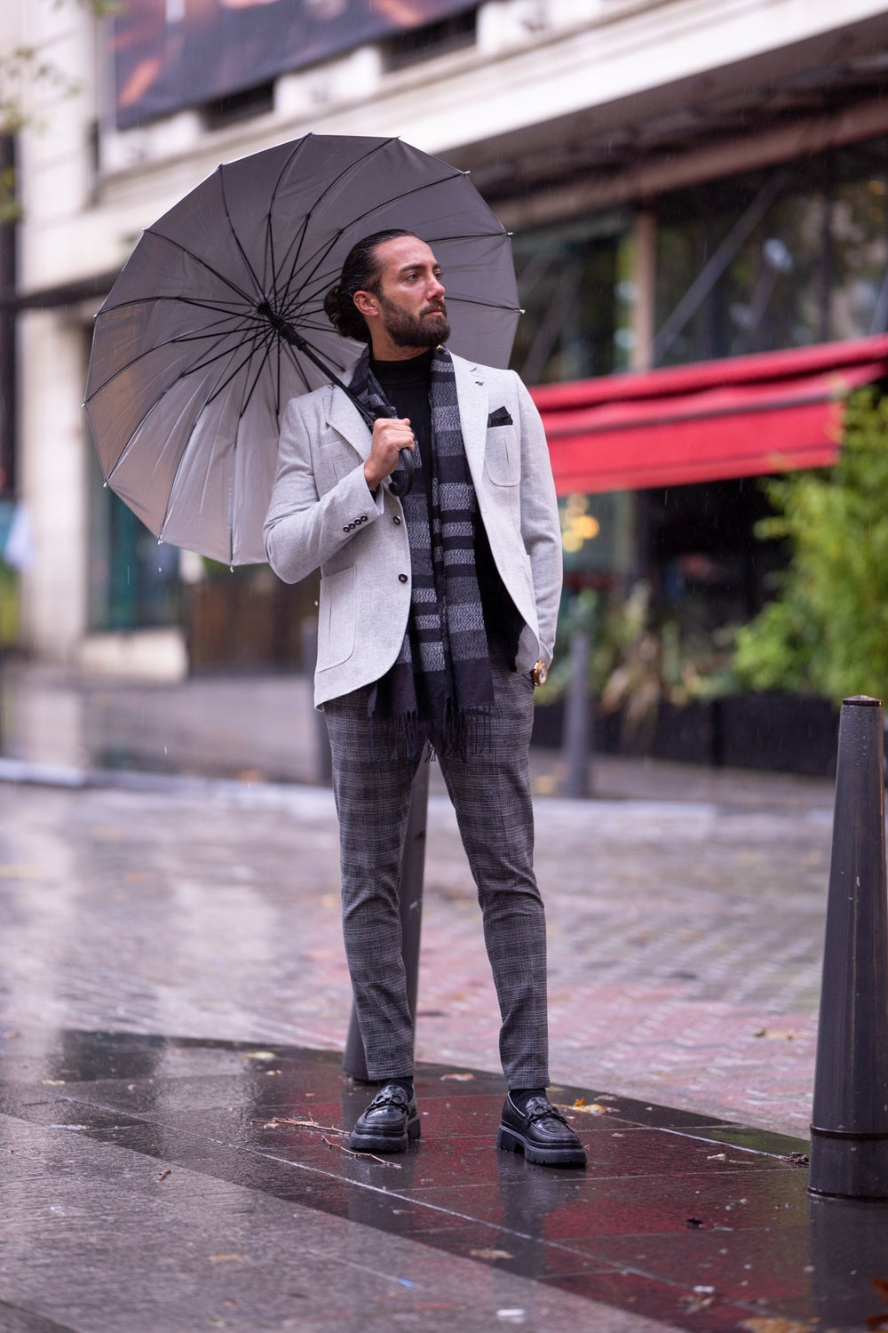 Specially Designed Wool Jacket With Bag Pocket Details - Gray