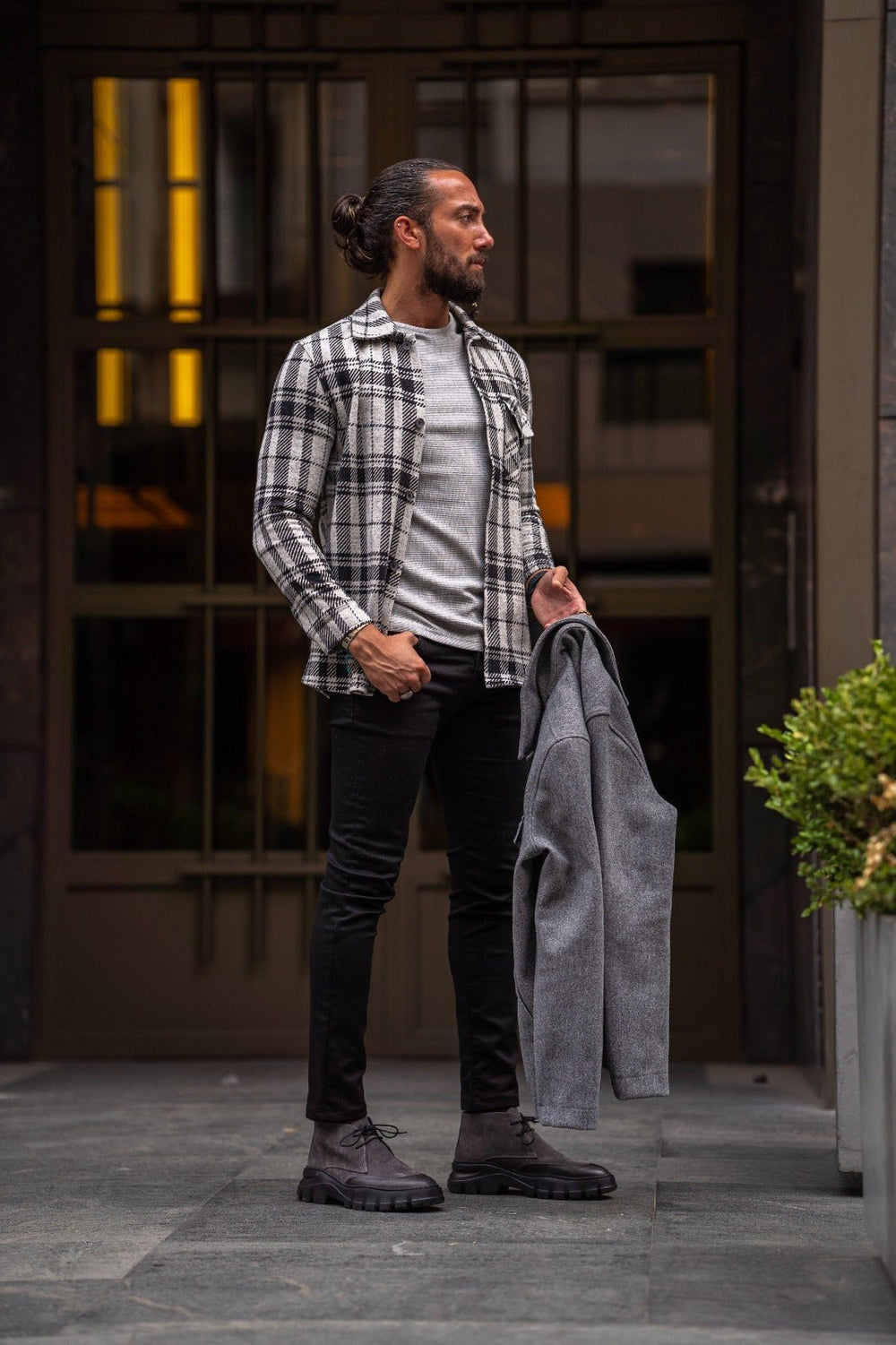 Slim Fit Stripe Detailed Lumberjack Shirt - Black