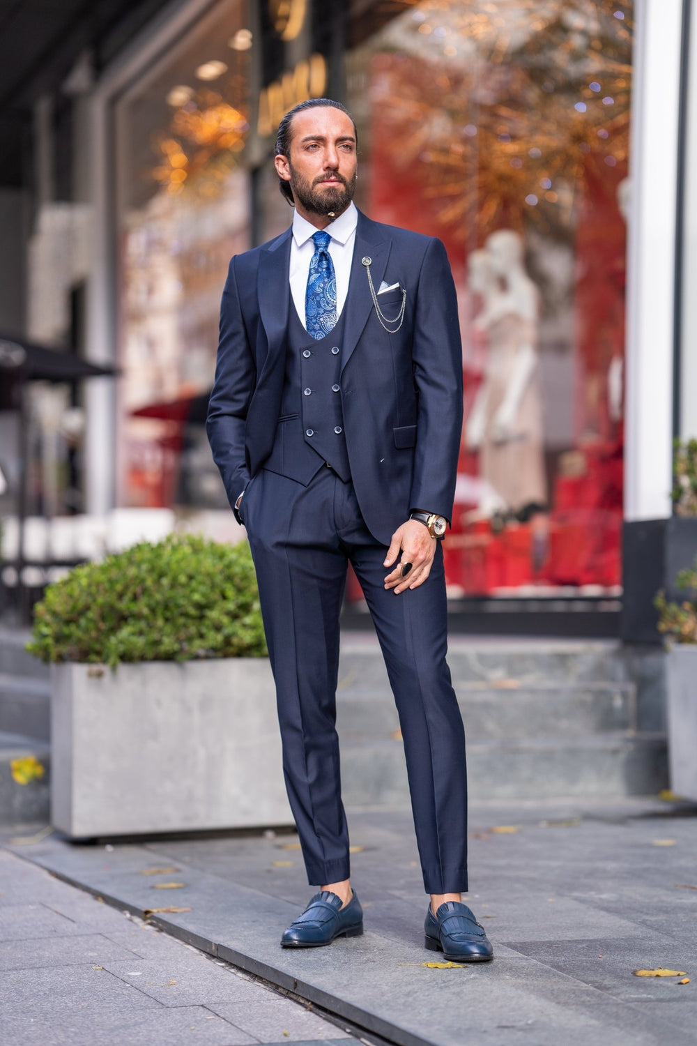Special Design Slim Fit Lycra Fabric Plain Suit - Navy Blue