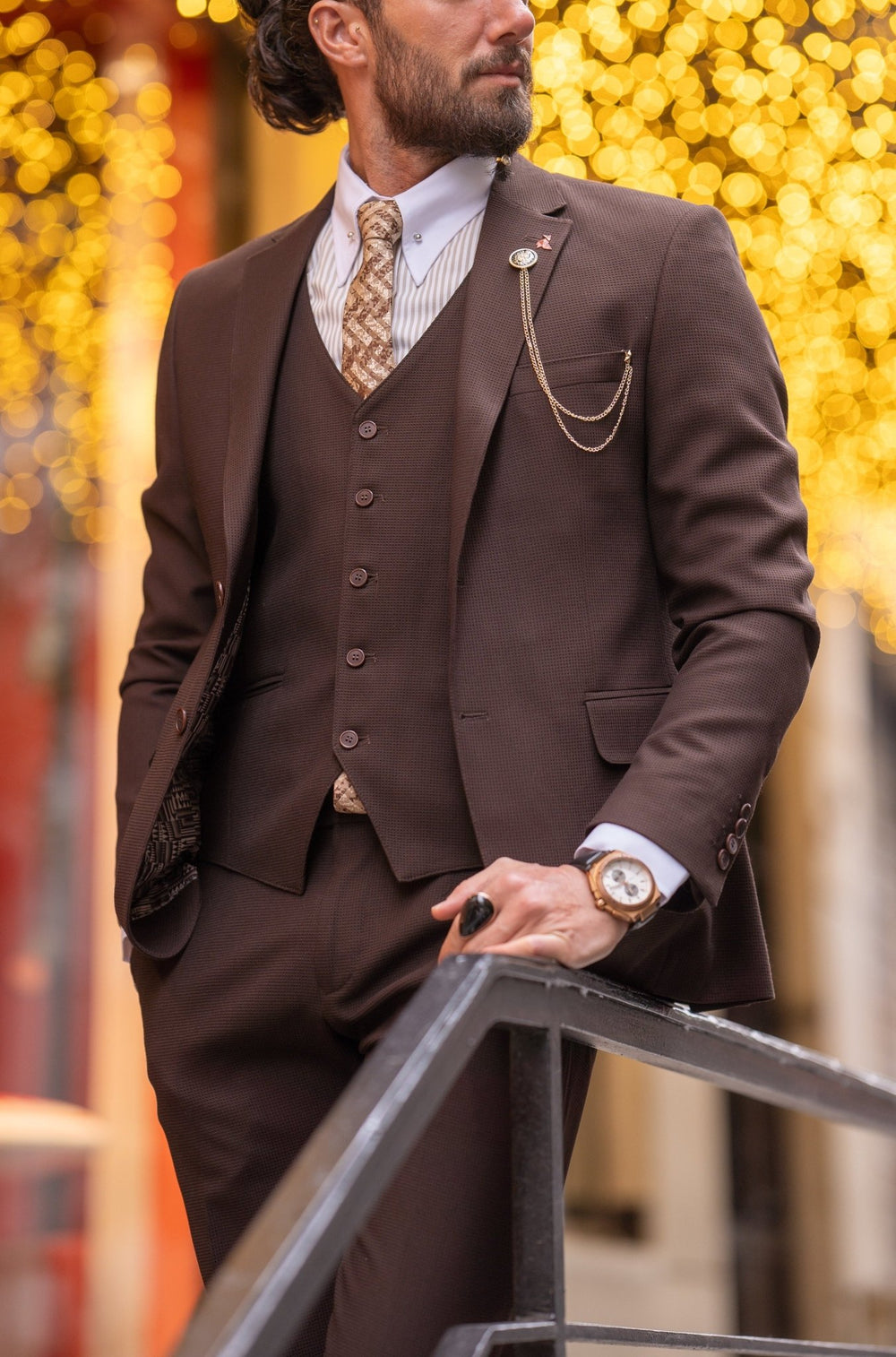 Embrace sophistication and exclusivity with our Menstylewith Special Design Slim Fit Self-patterned Suit. Expertly crafted for a perfect fit, this suit features a unique self-pattern design that exudes luxury. Elevate your style and make a statement with this must-have addition to your wardrobe.